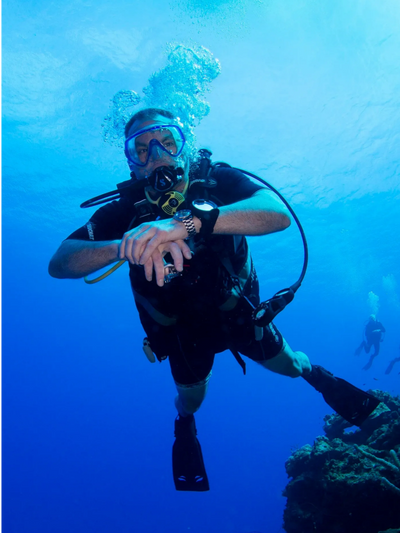 Outside of work, he is an avid scuba diver, a decent mountain biker, and a proud mediocre skier.